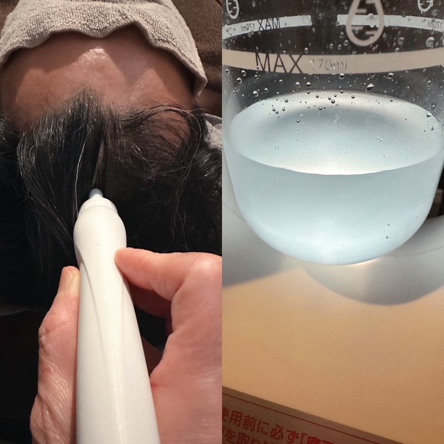 ハイドラ毛穴洗浄(水素水を発生しながら毛穴の汚れを除去)頭皮、お顔、背中のコースございます。